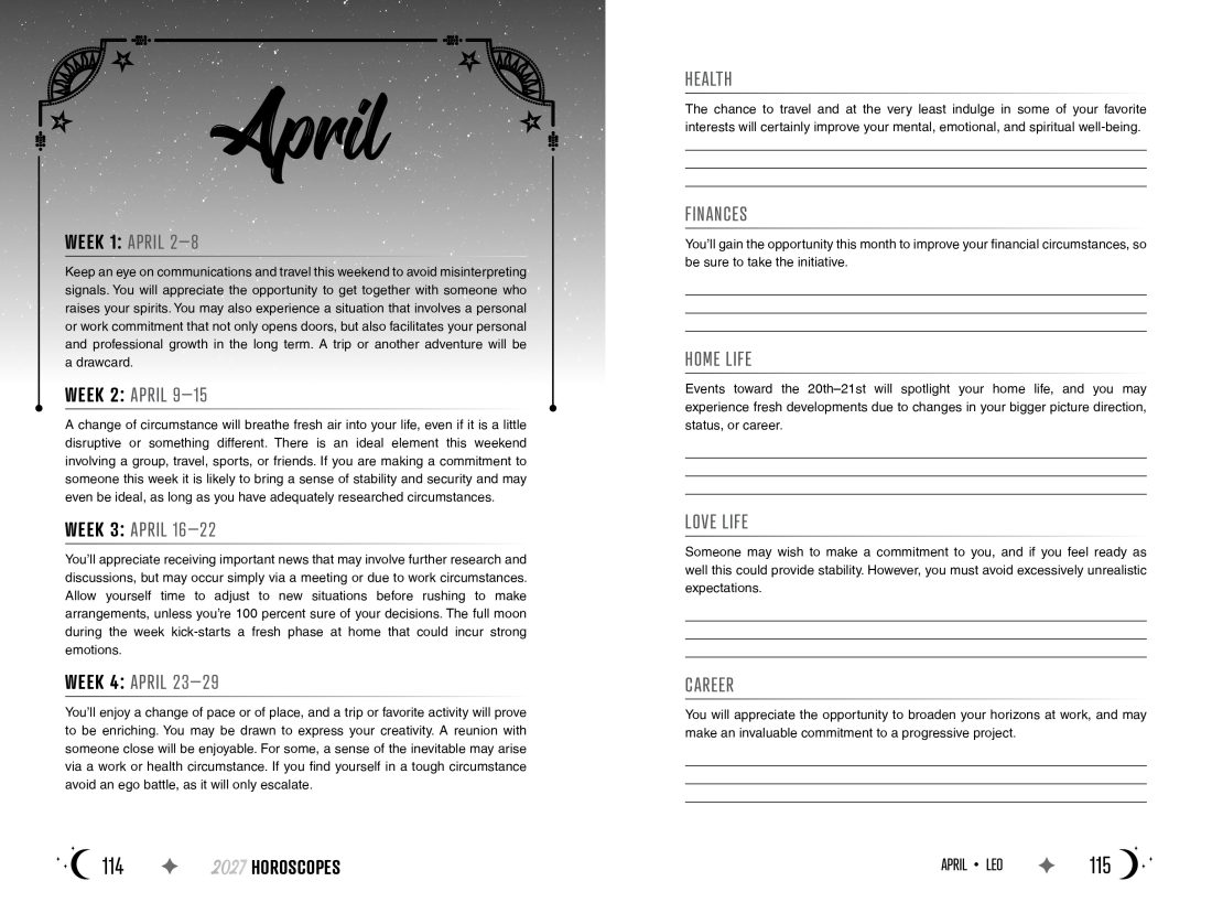 This stylish and user-friendly guide is filled with information on interplanetary aspects and retrogrades, allowing you to understand celestial movements. It features weekly forecasts for every zodiac sign and provides all the information you need to understand what the year has in store for you. This astrological reference book is filled with inspiring and motivating predictions to help you prepare for the year ahead. You’ll learn how to navigate opportunities and maximize your potential.