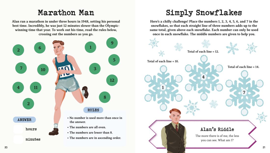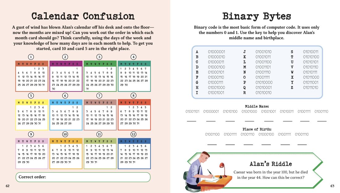Young readers can challenge their minds with these clever puzzles inspired by Alan Turing, the brilliant mathematician and codebreaker whose skills helped save countless lives during World War II. This engaging activity book features over 100 brain-boosting challenges including logical reasoning puzzles, sudokus, number deductions, sequence problems, and other mathematical mysteries. By purchasing this book, you also support The Turing Trust, a charity founded by Alan’s family to provide disadvantaged communities with access to computers. Perfect for children aged 7 and up, it guarantees hours of stimulating fun and learning.