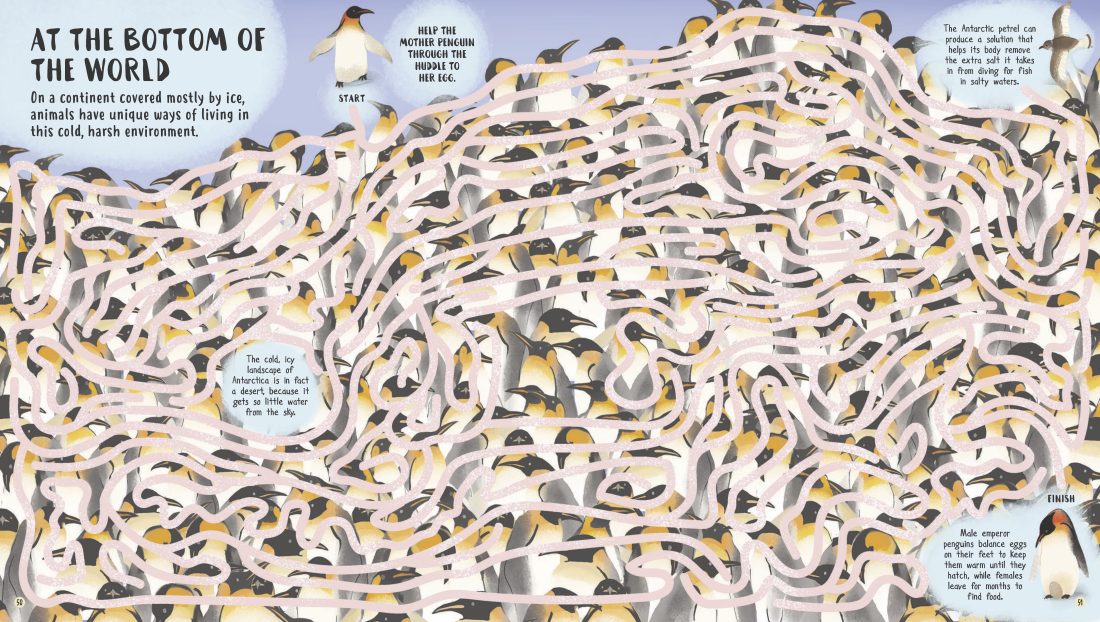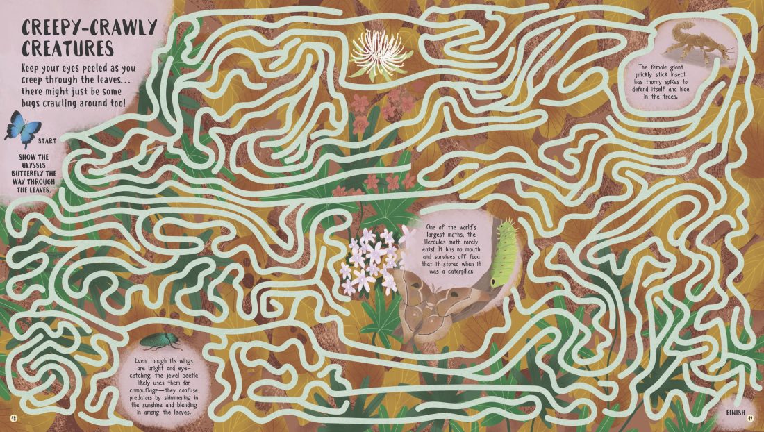 This brilliantly fun book features an interactive 3-D maze on the cover and 23 more mazes inside, taking young readers on an exciting journey through Earth’s diverse habitats while revealing fascinating and quirky wildlife facts. The cover maze is made from sturdy plastic with a ball bearing to guide along the paths, while the lavishly illustrated pages inside explore mammals, birds, reptiles, insects, and more. These clever visual puzzles develop concentration, patience, and problem-solving skills, offering hours of satisfying exploration and learning. Perfect for curious readers aged 6 and up.