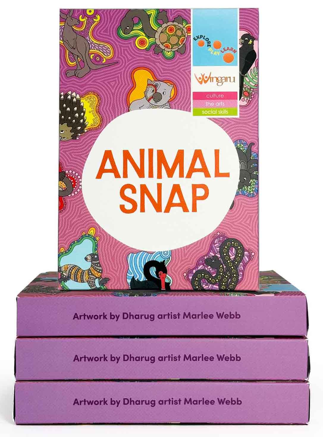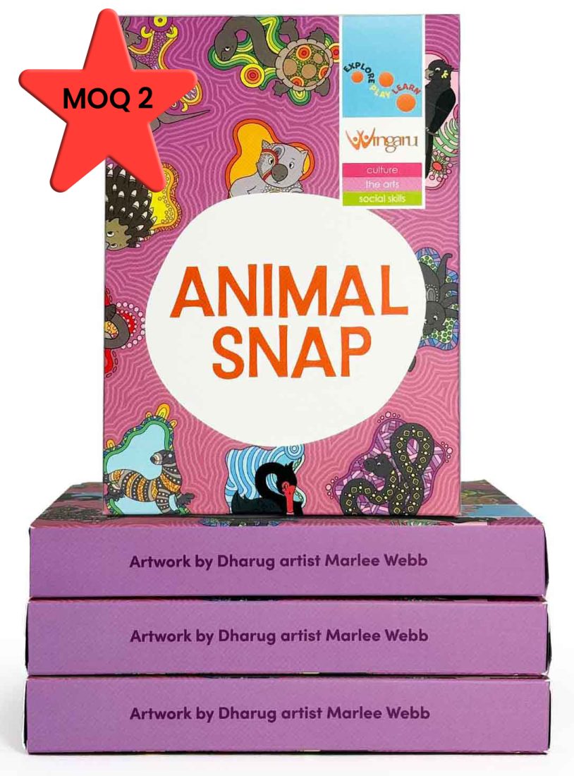 Test your reflexes and memory with this gorgeous version of a timeless game of speed and skill! Featuring 10 Aussie animals and artwork by Dharug Artist Marlee Webb, our Animal Snap Card Game includes 40 cards and is suitable for players of all ages and skill levels. Printed in Australia using recycled materials. Designed and produced by Wingaru Education, a 100% Aboriginal-owned education specialist. Minimum order requirement = 2.