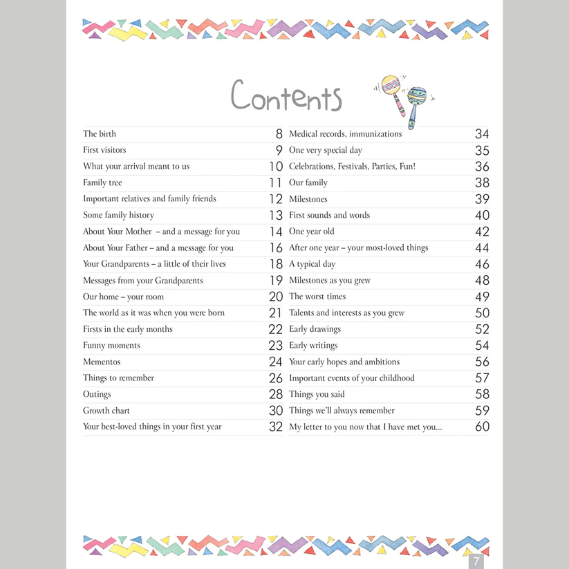 Remember all the wonderful excitement of your baby’s first days, weeks and years with this stunningly beautiful record book. Write down and capture all the hilarious and heart-warming things that children do – after all, babies are babies for such a short time! Baby Record Book has lots of space to glue in photographs, save baby footprints, or even a lock of hair, so you can hold onto all those magical moments, and create a very special keepsake to last a lifetime.