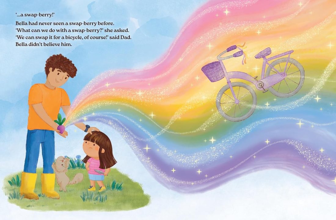 Join clever and determined Bella on a delightful swapping adventure! Starting with a tiny seed, Bella dreams big and sets out to trade her way up to a shiny new bicycle. Along the way, she learns the power of value, patience, and creative problem-solving. With charming illustrations and a heartwarming storyline, Bella Grows a Bicycle introduces young readers to the basics of financial literacy in a playful and relatable way.