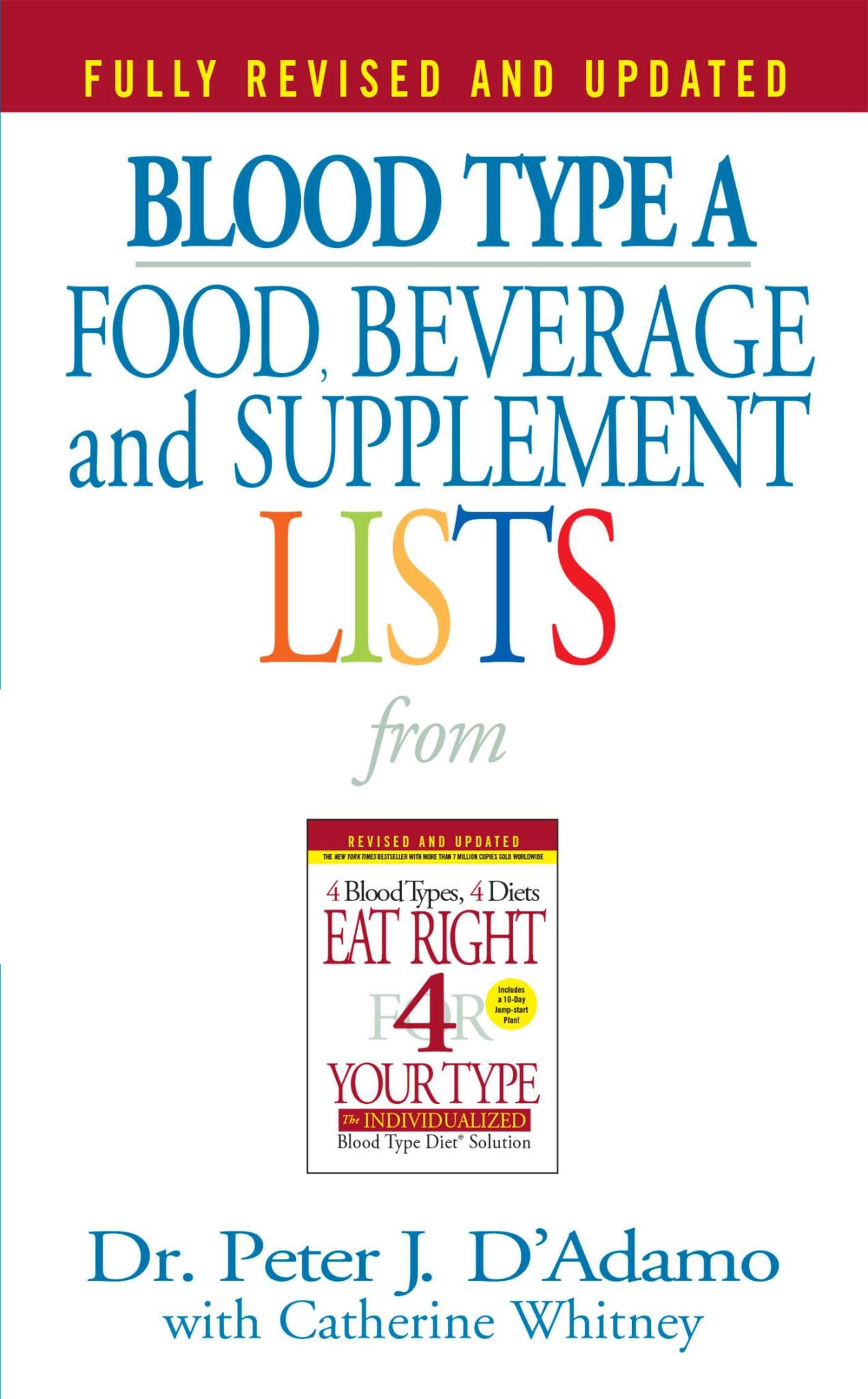 BLOOD TYPE A FOOD, BEVERAGE AND SUPPLEMENT LISTS
