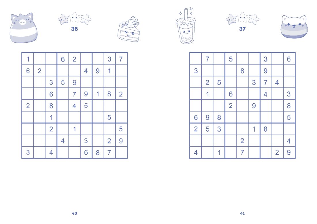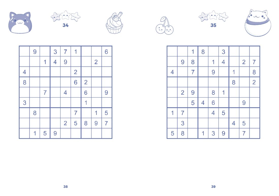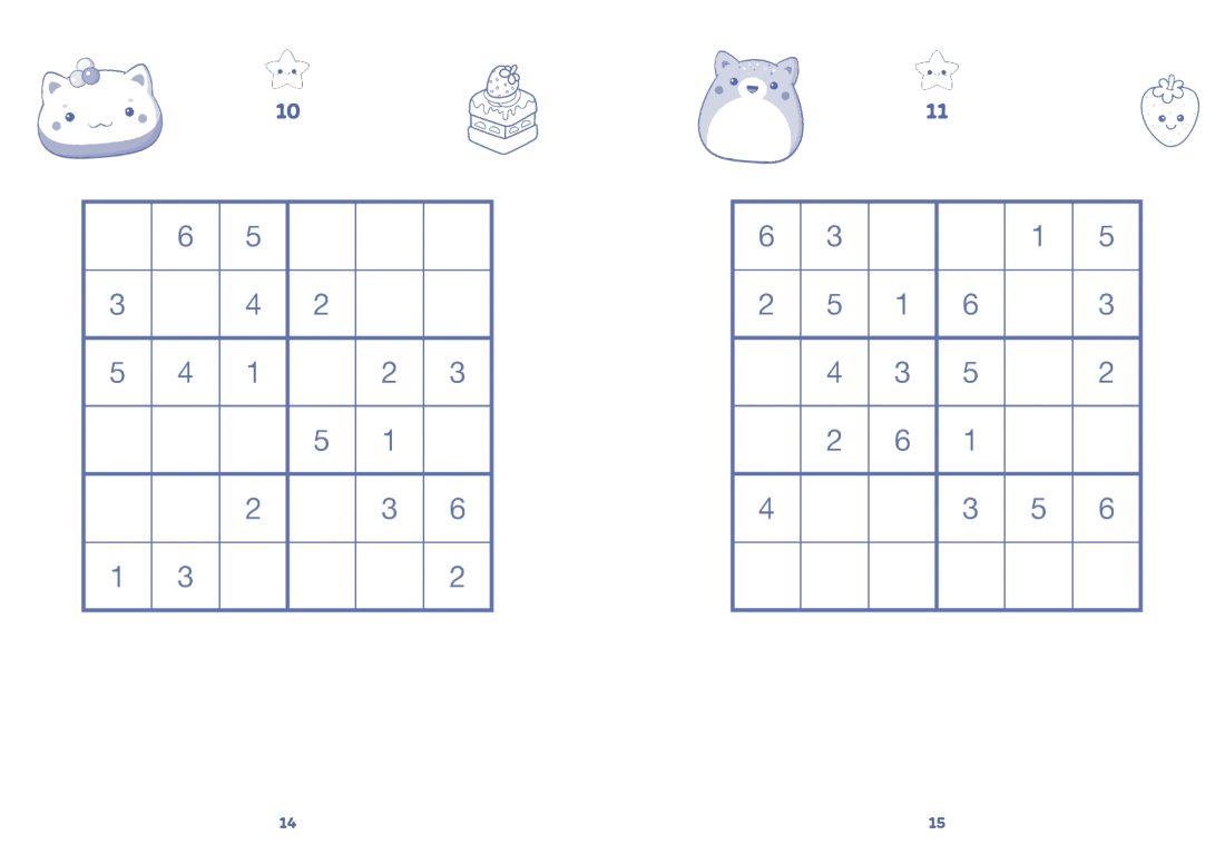 Kids can cosy up and enjoy over 100 sudoku puzzles in this adorable collection with printed page edges. This super fun and easy-to-understand sudoku book is perfect for kids who love a good brain-teasing adventure! Whether they’re brand new to sudoku or already little puzzle pros, there’s something exciting inside for everyone. Each puzzle is adorably illustrated with kawaii characters and sorted by level, so kids can start with something simple and build up to trickier challenges when they’re ready. Feeling chill? Go for an easy one! Feeling brave? Try a brain-bending grid! Perfect for kids aged 9 and up.