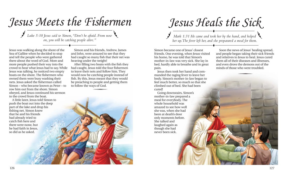 This beautiful hardback edition brings together over 138 Bible stories for younger readers, presented with full-colour illustrations and attractive printed page-edges. From The Creation to Noah’s Ark, and The Feeding of the Five Thousand to The Sermon on the Mount, this beautiful, fully illustrated collection of stories from the Old and New Testaments brings Christian teaching to life for a new generation. This edition also contains a useful reference section about people, places, and key terms to help children get the most out of these exciting and treasured stories. ABOUT THE SERIES: Arcturus Deluxe Children’s Classics are exquisitely designed hardcover editions of classic children’s literature, beautifully presented with full-colour illustrations, stencilled page-edges, and decorative endpapers. Together, they make a wonderful entryway into these best-loved classics that children can treasure forever.