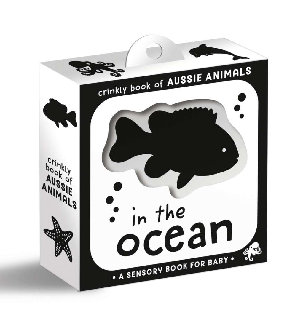 This crinkly sensory book, filled with contrasting illustrations and soft crinkly material, is ideal for stimulating your babys senses and promoting their development. Part of the Crinkly Book of Aussie Animals series, this edition takes little explorers on an ocean adventure, offering a simple yet engaging introduction to the creatures of the deep. The rhythmic text, paired with tactile experiences, makes this a delightful addition to any babys library, along with other books in the series like In the Bush, In the Nest, In the Outback, and In the Ocean.