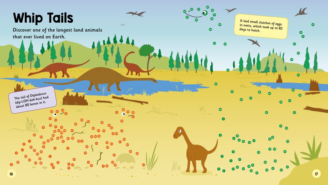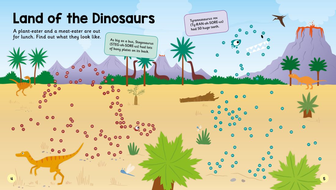 Let’s explore the wonderful world of dinosaurs! This fact-packed book is full of fun and exciting, full-colour dinosaur scenes to complete. Young puzzlers can practice their number learning as they connect the dots to bring the most amazing dinosaurs to roaring life. Perfect for children aged 4+. Includes dots from 1 to 100, helping children to practice their numbers, Features fun facts on the dinosaurs in the pictures and Each scene is vibrantly illustrated in full-colour.