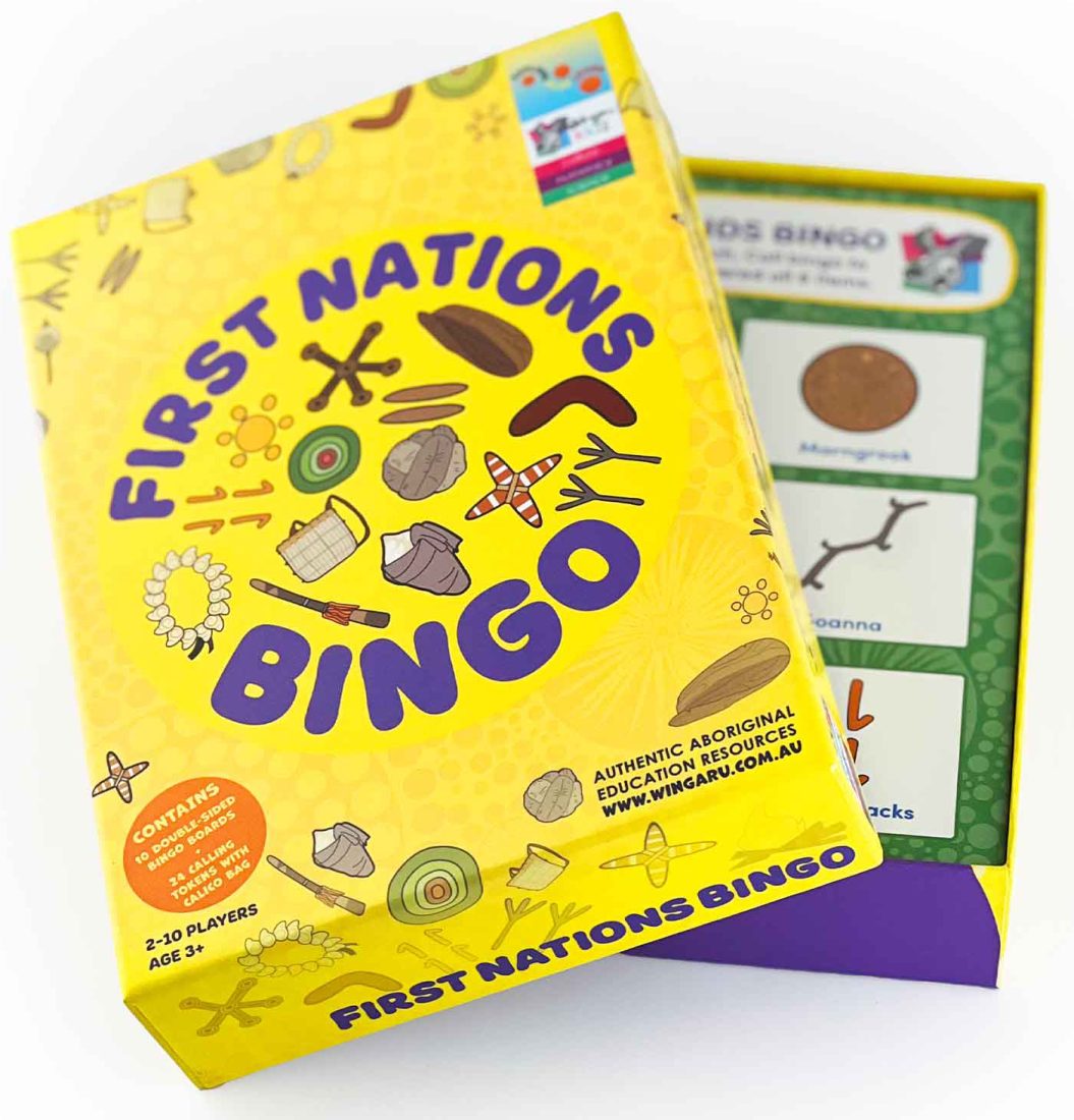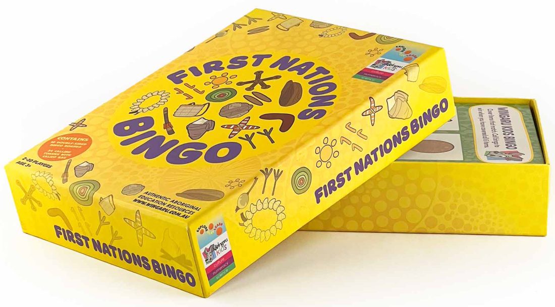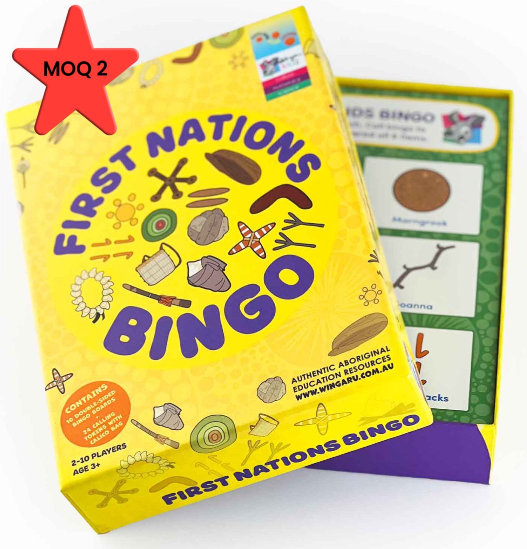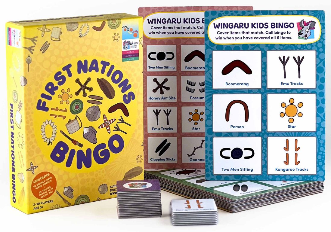 Featuring First Nation symbols and items, this bingo set helps kids learn about First Nations people, culture and histories, while developing social skills such as taking turns and communicating with other players. 10 double-sided bingo boards means educators can choose the level of play suitable for players. Featuring artwork by Dunghutti artist Aunty Cynthia O’Brien-Younie. Game Contents: 10 unique two-sided 14.8cm x 21cm playing boards, and 24 illustrated caller tokens. Designed and produced by Wingaru Education, a 100% Aboriginal-owned education specialist. Minimum order requirement = 2.
