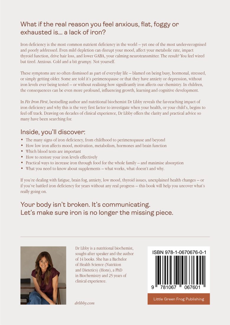 This book is for anyone who has ever felt persistently tired, anxious, low in mood, or disconnected from their spark – and not known why. It’s for parents watching a child struggle with energy or concentration. It’s for women navigating the rhythms of their menstrual cycle or the shifts of perimenopause. It’s for anyone who feels like they’re “doing everything right” but still doesn’t feel like themselves – or who has tried, unsuccessfully, to restore their iron levels and is still searching for answers.