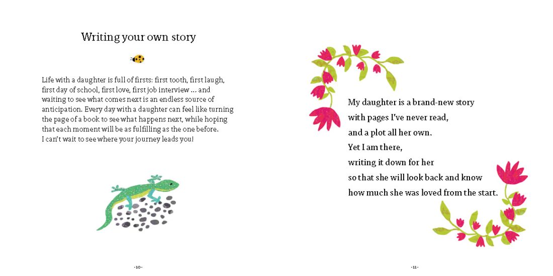 Daughters hold a special place in the hearts of their families. From the moment they are born, daughters leave a unique mark on the world around them – shaping the future, creating lasting memories and bringing joy to all. This book is designed to be read with your own lovely daughter, or by a lovely daughter you want to acknowledge for their unconditional love and support. There are thoughts on why daughters are so magical and quotes that reflect the powerful influence of daughters.