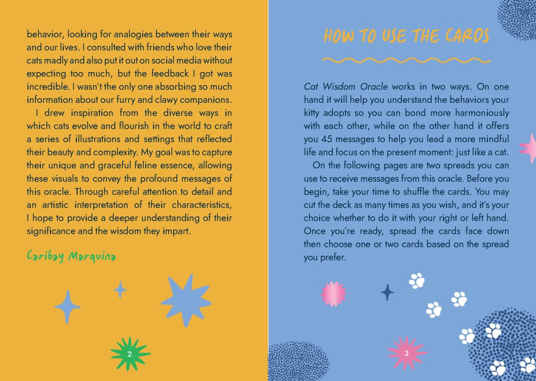 A thoughtful gift for any cat lover, this card deck includes 45 quirky feline insights to promote a happier, less stressed life. Embrace a ‘less human’ life—one that is less stressful, less anxious, and more joyful—with this vibrant, whimsical and pawsome oracle deck. The purrfect gift for cat lovers or anyone ready to connect with their inner feline, this 45-card deck is filled with humorous and inspiring scenes, true insights into the fascinating ways of our beloved cats and furry inspirations for a relaxed mindset.