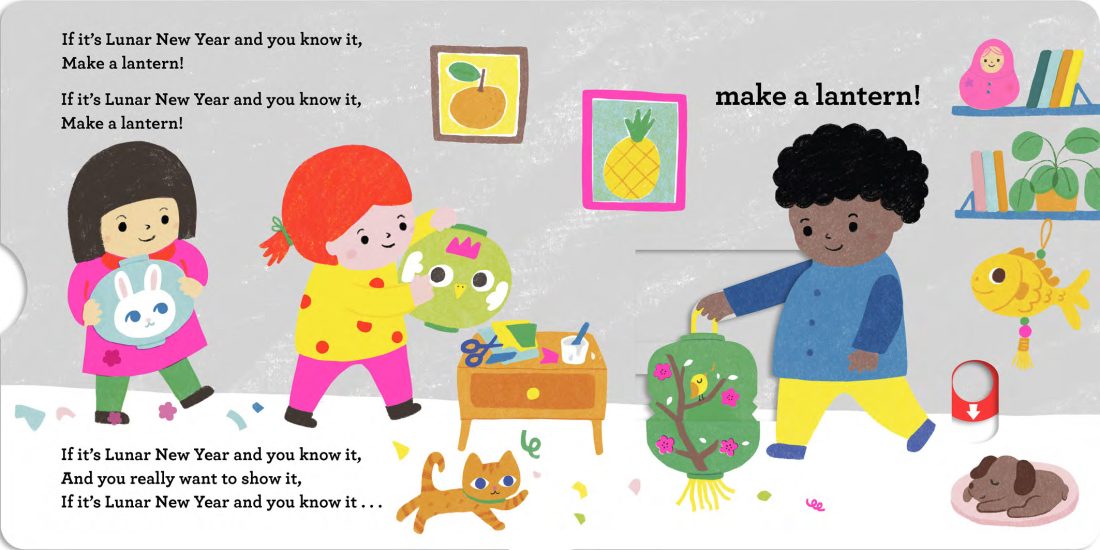 Celebrate Lunar New Year with this festive sing-along board book featuring fun sliders that bring the story to life! Little children can join in four joyful activities – making a lantern, filling their plate, dancing along, and admiring the lights – using sturdy, easy-to-move sliders perfect for small hands. With vibrant neon artwork and rhythmic text, this book creates a lively, interactive experience that’s perfect for sharing together. Plus, scan the Stories Aloud QR code on the back cover to sing along with the song and make Lunar New Year celebrations even more magical.