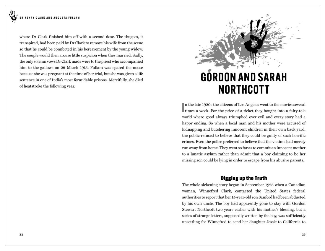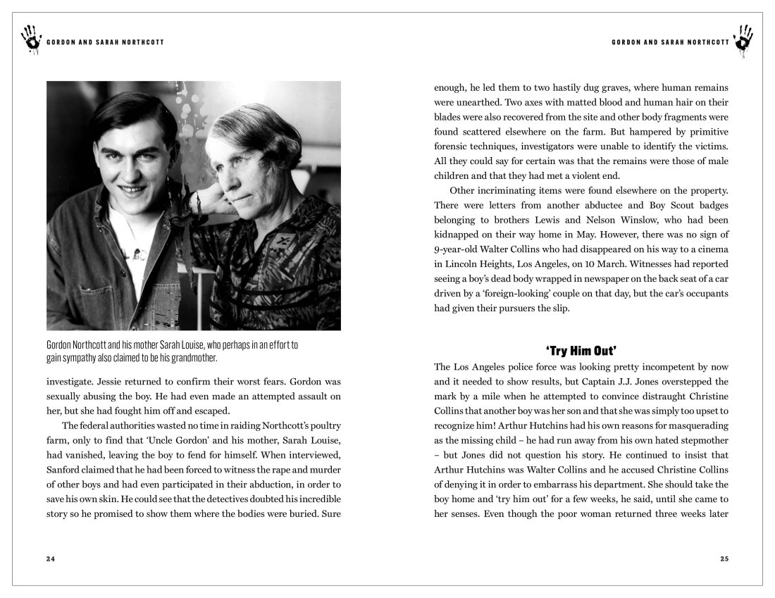 Murder and crime are not always carried out alone. Sometimes, when one partner is confronted with the horrifying truth of the other’s evil deeds, instead of turning away in shock, they become complicit in the carnage. In other cases, a shared love of darkness and depravity binds them, driving them to enact monstrous fantasies upon the world. By covering for one another, these twisted duos can be incredibly difficult to catch. This chilling book recounts the terrifying stories of infamous criminal pairs such as Bonnie Parker and Clyde Barrow, Fred and Rose West, Douglas Clark and Carol Bundy, Paul Bernardo and Karla Homolka, and David Parker Ray with Cindy Hendy.