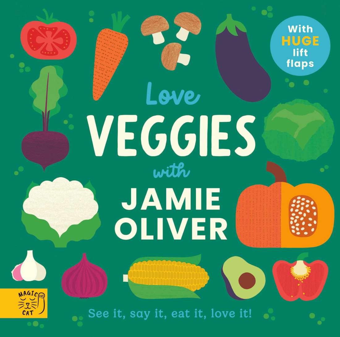 Packed with vegetables to touch and feel, and fun flaps to lift, this interactive board book makes exploring food an adventure from the very first bite. Every page of this sturdy board book is packed with sensory fun. Discover 20 new vegetables with textured skins for little fingers to touch and feel, then lift the flaps to see what’s inside! With simple first words to see and say, and interactive flaps, little cooks will learn about healthy food fun from the very first taste. Includes a healthy recipe from Jamie Oliver at the back!