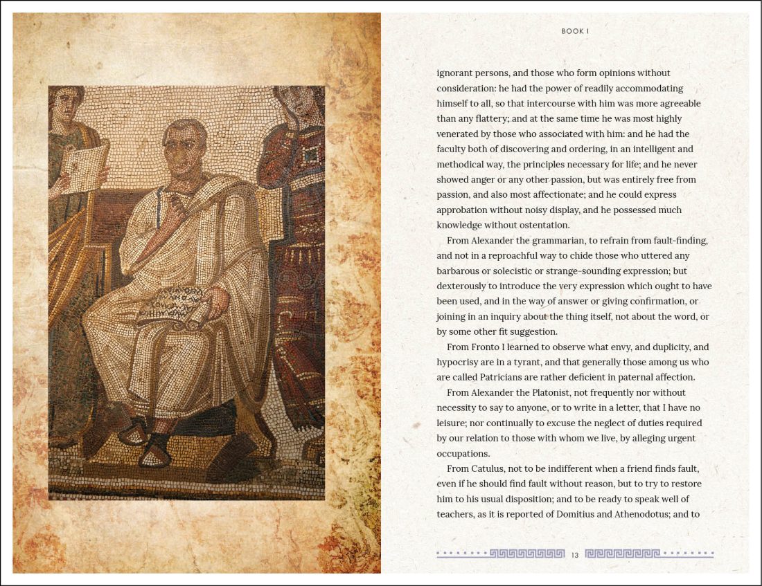 Marcus Aurelius’ Meditations is a timeless guide to Stoic philosophy, presented here in a luxurious silkbound edition with full-colour illustrations, gold embossing, and a decorative slipcase. This classic translation by George Long captures the emperor’s personal reflections on virtue, tranquillity, and balancing public and private life – wisdom that continues to inspire readers around the world.