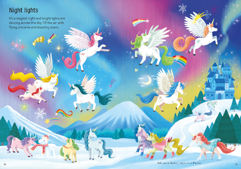 Join playful mermaids as they navigate a shipwreck, collect treasure and meet all kinds of sea creatures. Then, see unicorns and fairies play in forests and palaces, splash in waterfalls and dance by moonlight. With enchanting illustrations and over 700 stickers, this magical sticker book will keep little children entertained for hours.