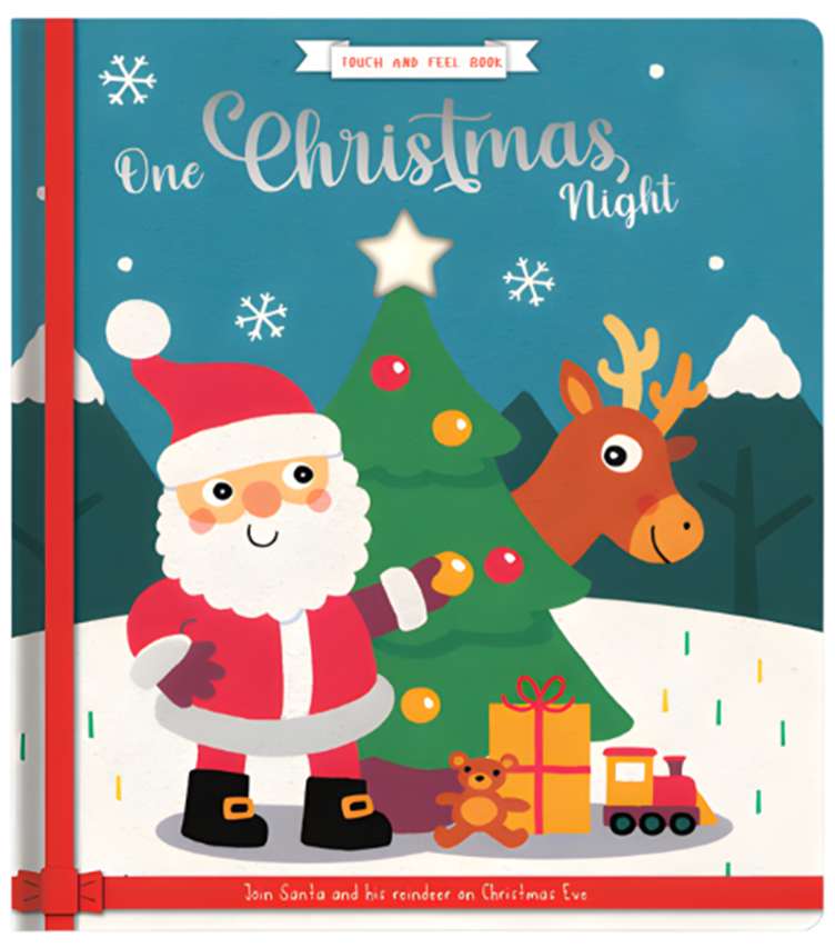 Follow Santa and his reindeer on a magical Christmas Eve journey in One Christmas Night. As Santa travels across the snowy sky delivering presents to children, twinkling stars shine above to guide his way. With die-cut star shapes and shimmering foil details, little readers can peek through the pages and enjoy a festive story filled with wonder, sparkle and discovery.