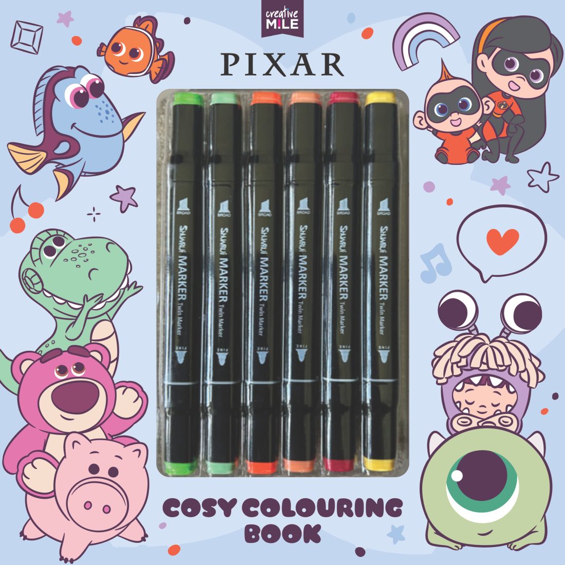 Bring some calm and cuteness to your day with Pixar cosy colouring. This book includes 6 double-ended markers and features classic characters and beloved buddies from across the Pixar universe just waiting to be brought to life with colour.