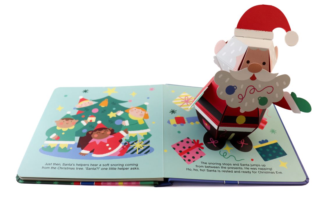 Ho, ho, ho! Santa’s fun adventure will have you jumping at the surprise. As the festive story unfolds, you will be delighted by the top-notch 3D pop-up of Santa on the last page. Just pull the tab on Santa’s hat to make him POP from the page! An internal Velcro closure will lock him back in place, to allow safe and easy storage.