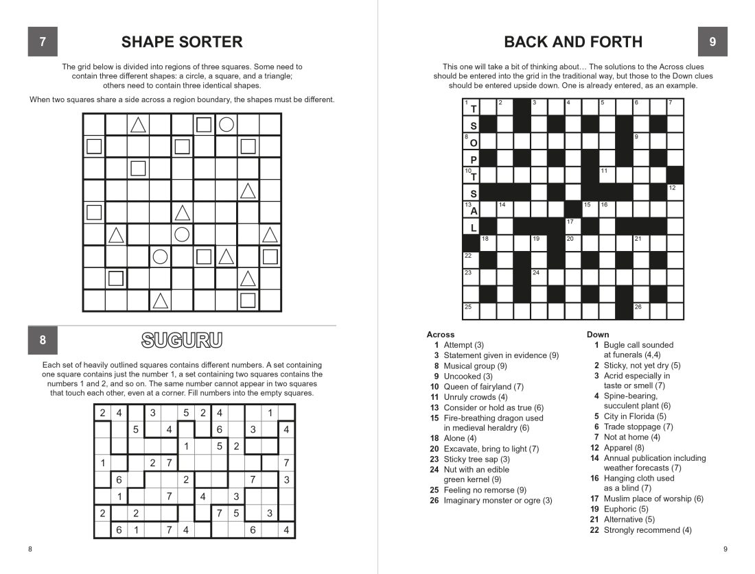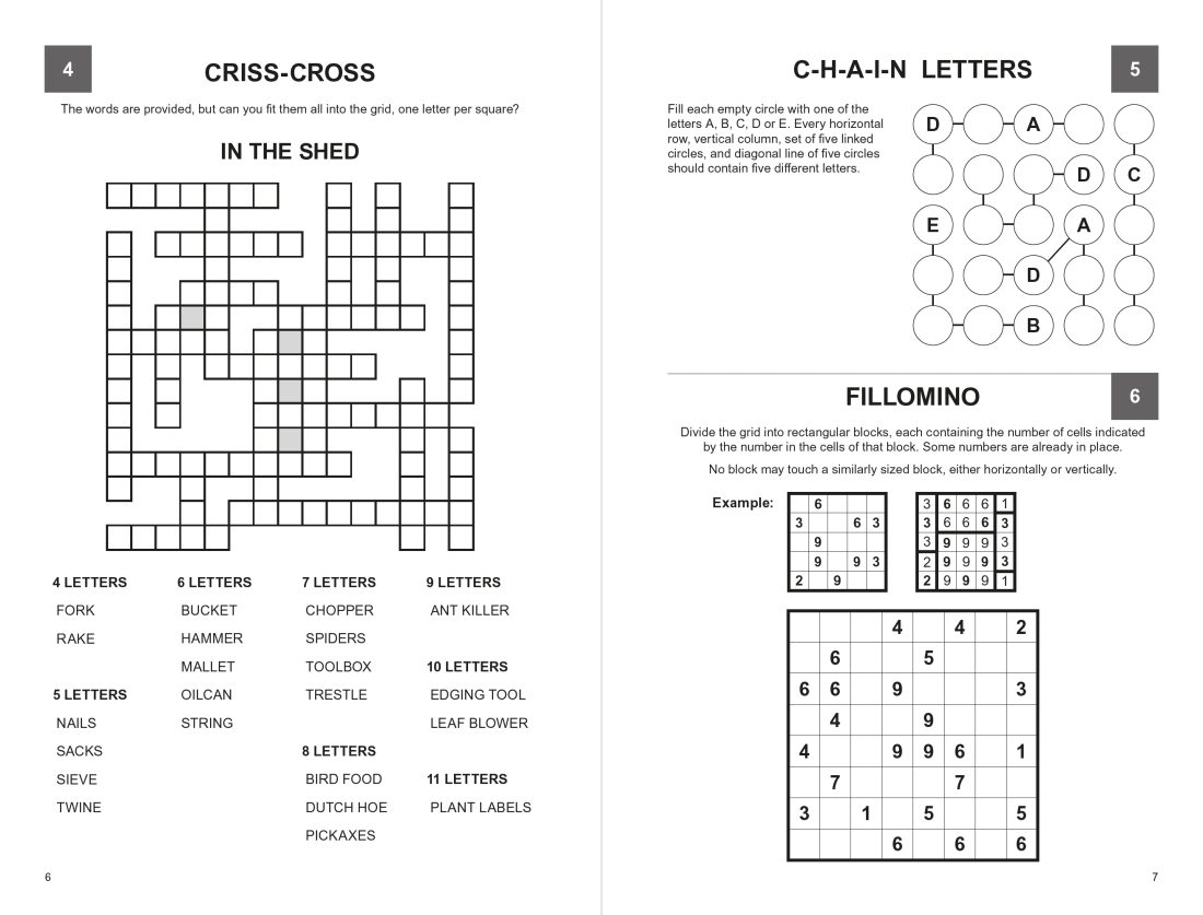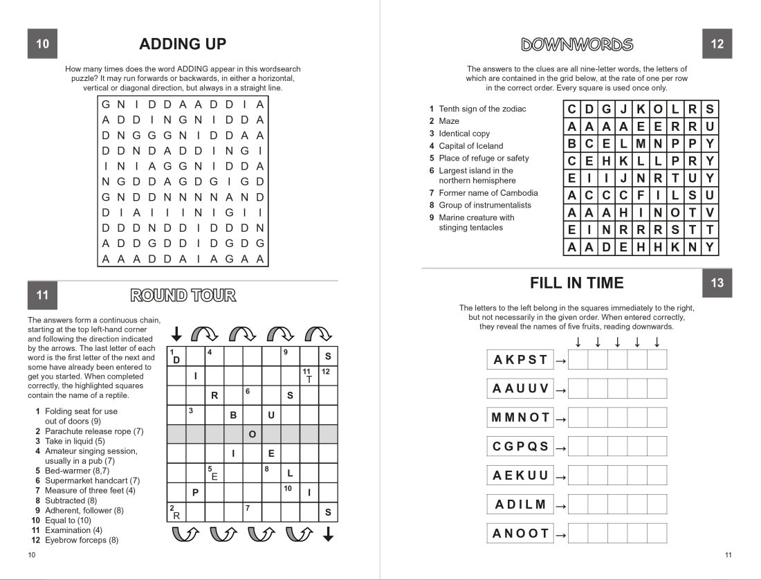 This excellent collection features 200 puzzles in a wide variety, designed to keep any solver thoroughly entertained. Alongside classic favourites like crosswords, wordsearches and sudoku, it includes inventive challenges such as pyragrams, X Marks the Spot and domino placement, offering fresh and exciting ways to engage your mind. Each puzzle encourages focus, sharpens problem-solving skills and provides a relaxing mental workout. Perfect for both newcomers and experienced solvers, this collection combines fun, challenge and stress relief, making it the ultimate choice for anyone who loves exercising their brain.