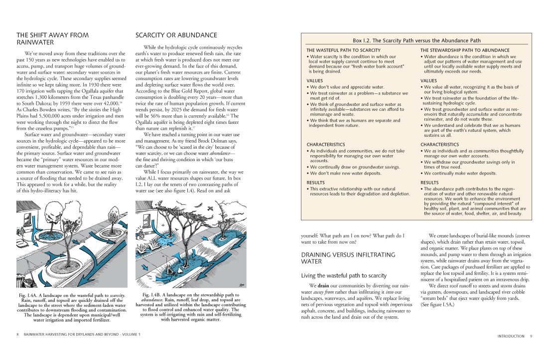 Turn water scarcity into water abundance! Rainwater Harvesting for Drylands and Beyond, Volume 1, 3rd Edition is the best-selling, award-winning guide on how to conceptualize, design, and implement life-enhancing water-, sun-, wind-, and shade-harvesting systems for your home, landscape, and community. This book enables you to assess your on-site resources, gives you a diverse array of strategies to maximize their potential, and empowers you with guiding principles to create an integrated, multi-functional plan specific to your site and needs. Clearly written with more than 290 illustrations, this full-color edition helps bring your site to life, reduce your cost of living, endow yourself and your community with skills of self-reliance and cooperation, and create living air conditioners of vegetation growing beauty, food, and wildlife habitat. Stories of people who are successfully welcoming rain into their life and landscape will invite you to do the same.