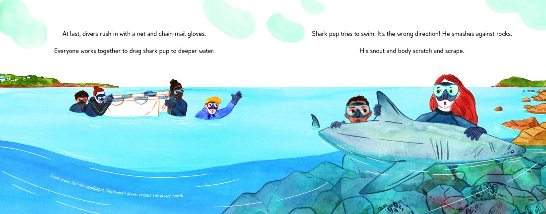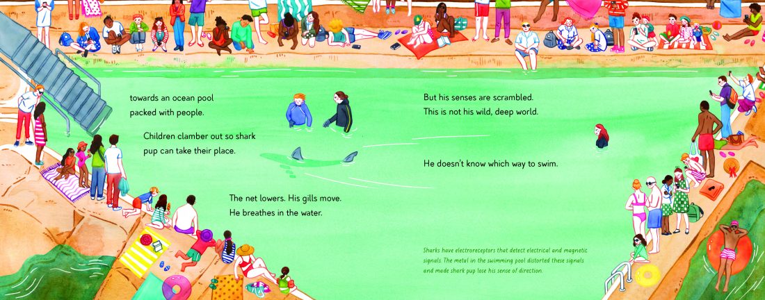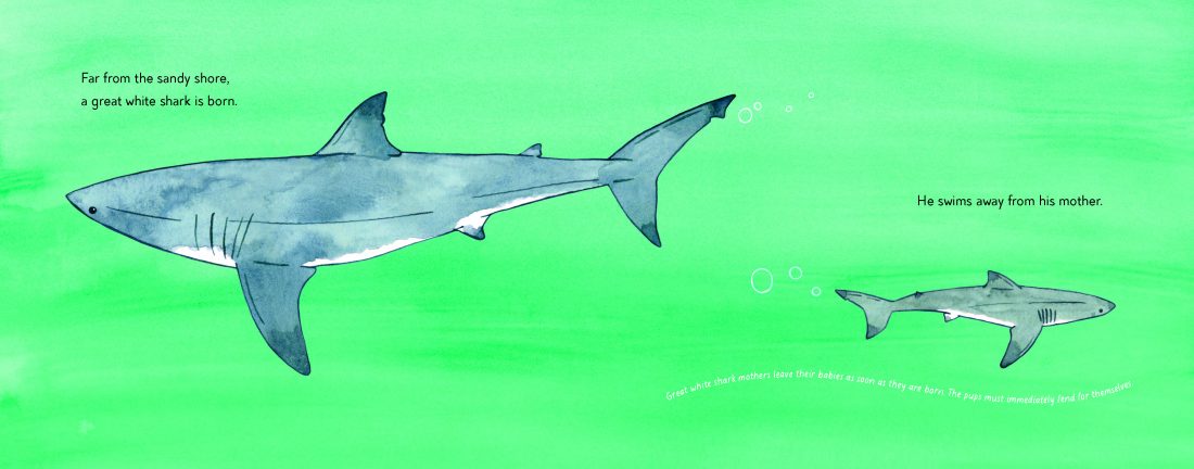 When a great white shark pup washed up on Manly Beach, the local community rushed to the shark’s rescue, eventually releasing it back into the ocean. Great white sharks are vital for the ocean ecosystem, and yet despite this, their beauty and mystery are rarely celebrated. This glorious picture book is a lyrical and emotive account of the shark pup’s journey back to the ocean, interspersed by fascinating facts about great white sharks.