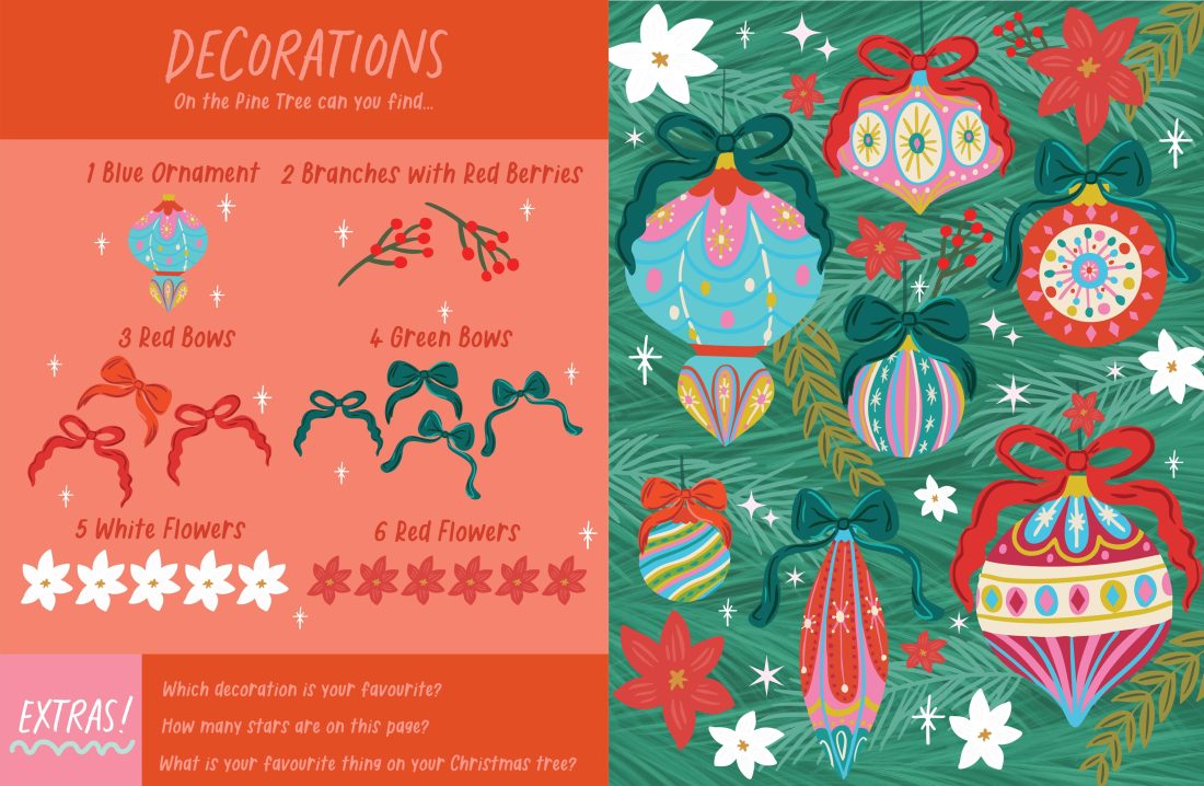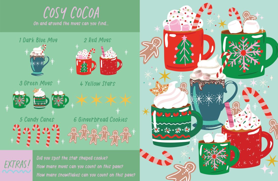 Immerse yourself in the magic of the season with this Christmas search and find book! From sparkling decorations and steaming mugs of cocoa, to twinkling lights and festive treats, this charming book is filled with heartwarming holiday scenes and traditional Christmas icons to discover and enjoy.