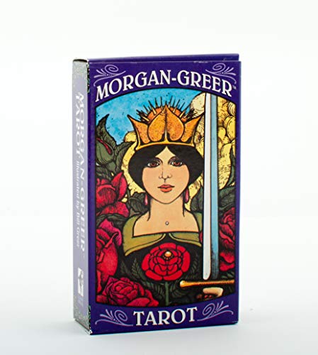 Based on the structure of the Rider-Waite Tarot, this uniquely expressive deck features magical imagery presented in deep, saturated colors. The borderless 78-card deck allows the details of tarot scenery and symbolism to be viewed from a close, intimate perspective. Morgan-Greer Tarot draws the reader into its evocative artwork. When laid out in a spread, the full scenes on borderless cards create a beautiful picture. The Morgan-Greer Tarot is the first modern tarot deck based upon the combined research of tarot leaders Arthur Edward Waite and Paul Foster Case. The Case book was used a primer by artist Bill Greer in choosing the colors for the Morgan-Greer deck, so as to “create an emotional reaction to each card even before the image could be looked at in depth.”
