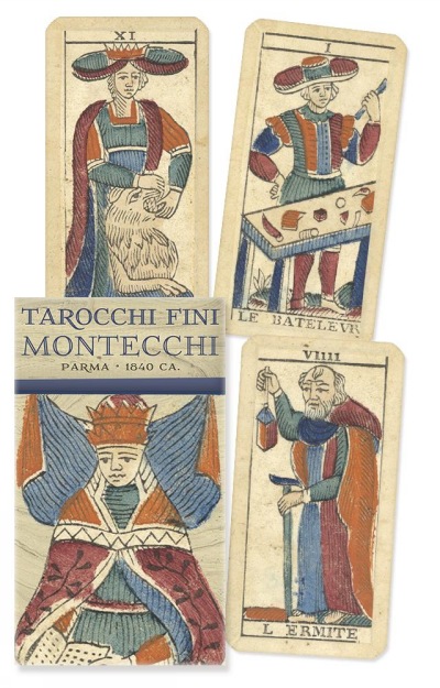The history of the Tarot de Marseille starts in southern France at the beginning of the eighteenth century, but its popularity immediately spreads into northern Italy, giving birth to several unique new decks. This Tarocchi Fini Montecchi from the city of Parma is an example of this momentous branching. As with all other products in the Anima Antiqua series, this one too is available in a limited edition of 3,999 copies only.