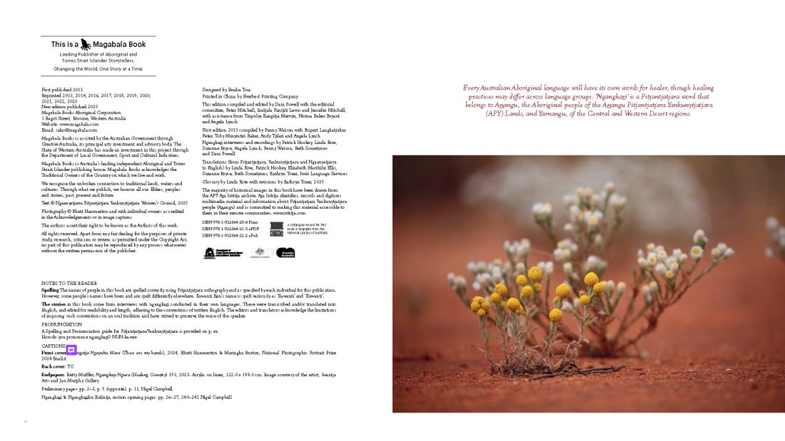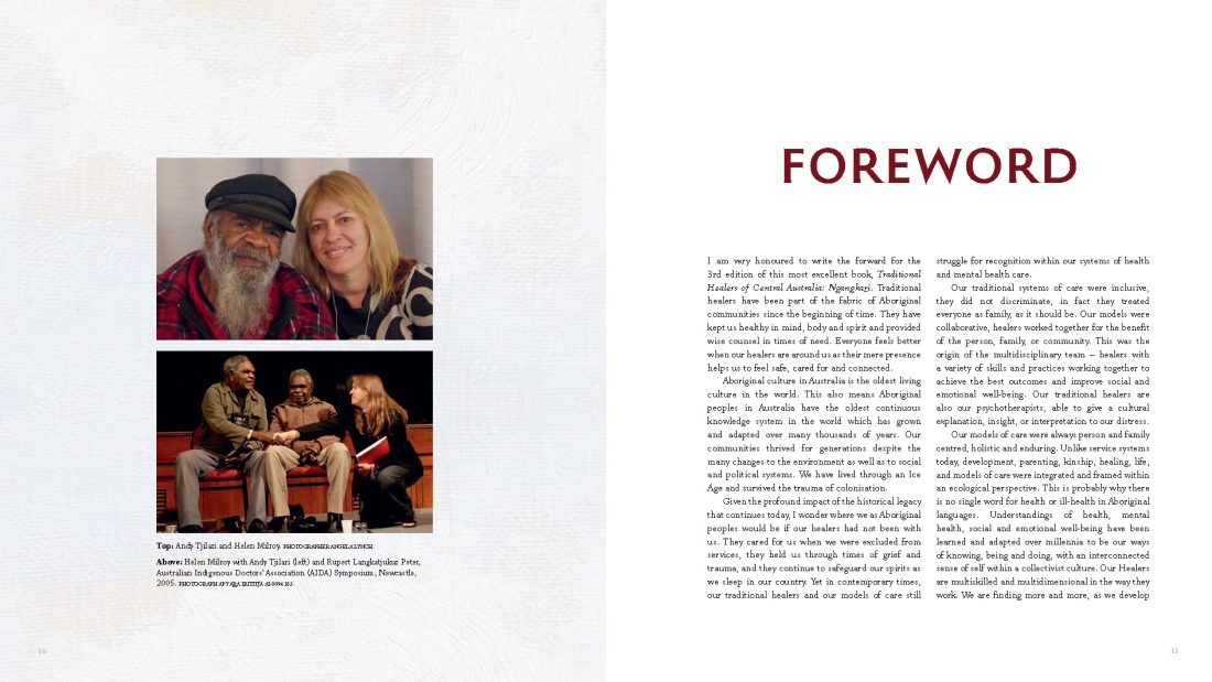 Traditional Healers of Central Australia contains unique stories, imagery and primary source material. Ngangkari are senior Aboriginal people authorised to speak publicly about Anangu (Western Desert language speaking Aboriginal people) culture and practices. The Ngangkari speak directly to the reader, recording accurate, authorised information about their work in their own words.