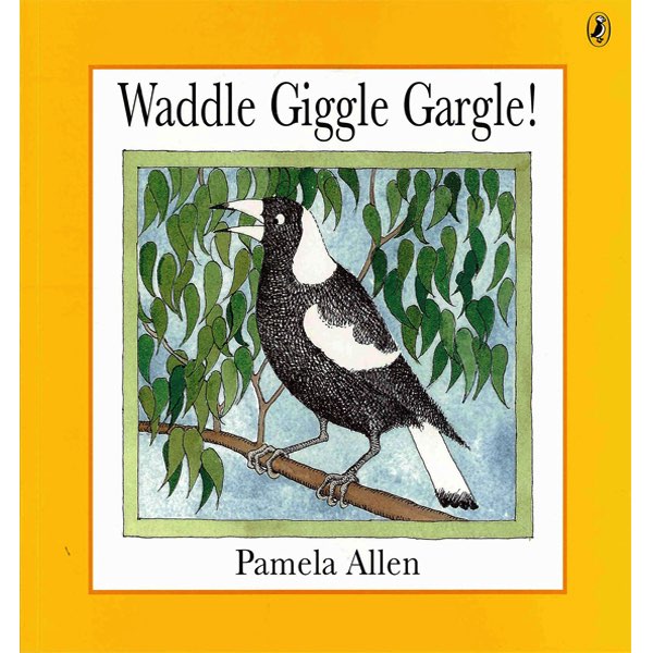 Sitting in a tree outside Jonathan’s house is a black and white magpie. ‘Waddle Giggle Gargle!’ the magpie shouts. A delightful story about a boisterous, swooping, waddling, giggling, gargling bird!