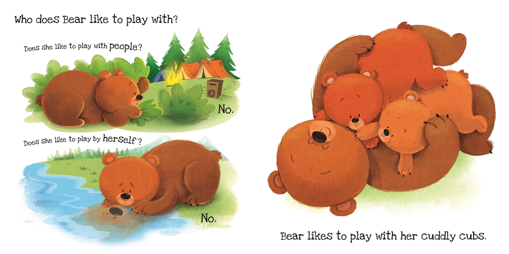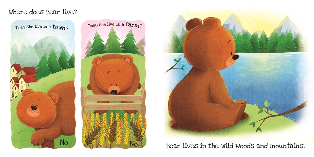 Meet new animals and learn what they like, and don’t like, in this new series for children aged 0-3. Designed for maximum appeal with a simple, repeated formula, touch and feel on every spread, and fun, colourful illustrations. Introduces learning topics about the habits and lives of different animals, as well as offering a storytime treat. Meet a not-so-grizzly bear and explore her home, friends and food.