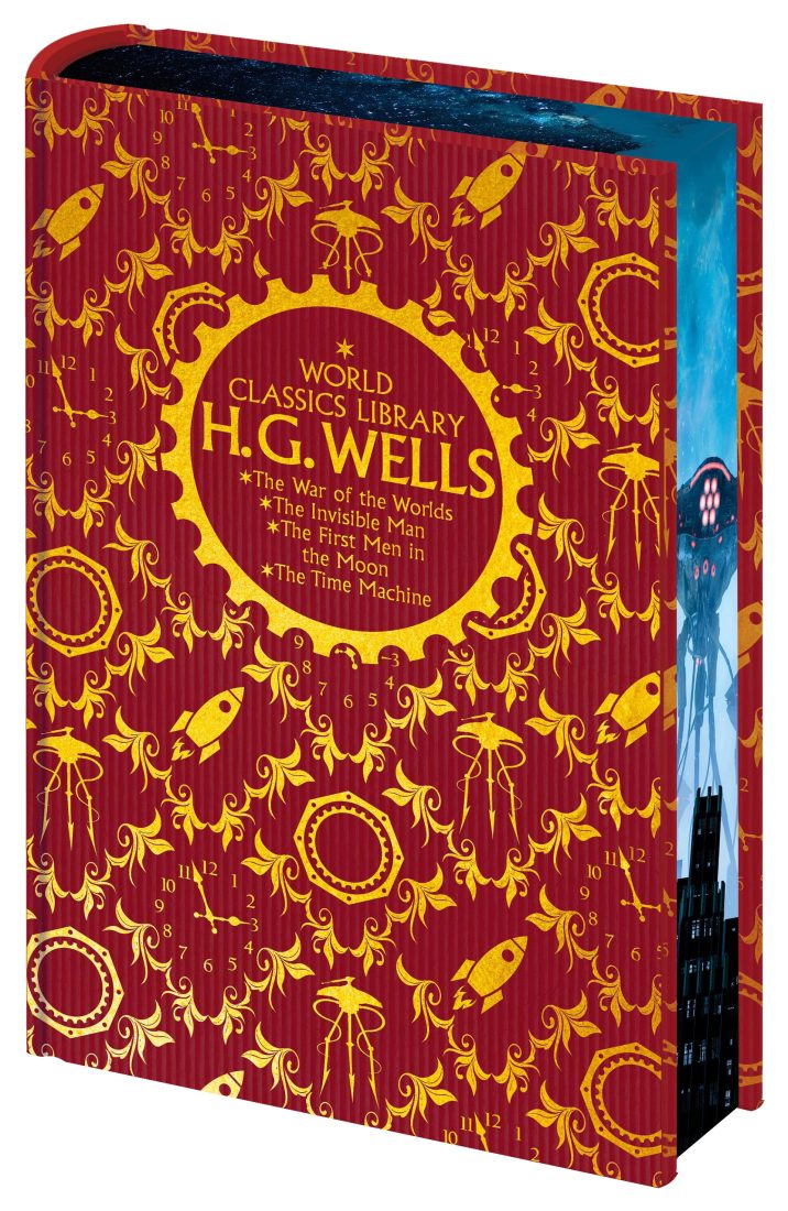 This spectacular hardback collector’s edition brings together four classic novels by H. G. Wells, presented with striking gold cover embossing and illustrated page edges. H.G. Wells is often referred to as ‘father of science fiction’. His works have been continually adapted to stage and screen and remain pertinent to a modern audience. Whether concerning alien invasion, time travel or the risks of scientific development, these tales examine the potential futures of humanity which are at once thrilling and terrifying.
