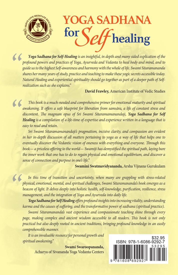 The Sivananda teaching stems from a rich lineage of Yoga Masters, including Swami Sivananda and Swami Vishnudevananda. Master Sivanandas practical and balanced synthesis of Yoga is shared through nearly 300 books. Swami Vishnudevananda, founder of the International Sivananda Yoga Vedanta Centres, taught worldwide with humour and practicality, writing bestsellers like The Complete Illustrated Book of Yoga and Meditation and Mantras. This book introduces the essential spiritual, mental, and physical self-healing practices. For deeper study, one can pursue advanced Yoga teacher training and health education courses to empower healing and freedom from suffering.